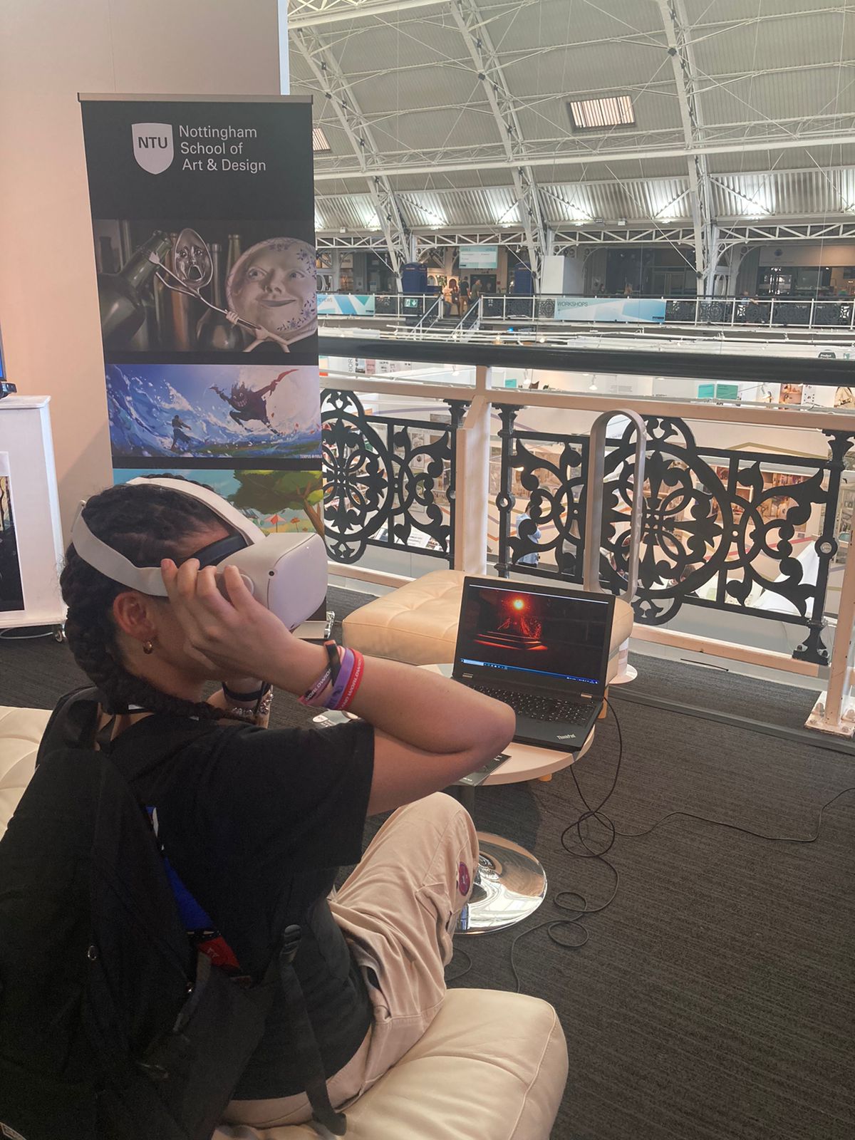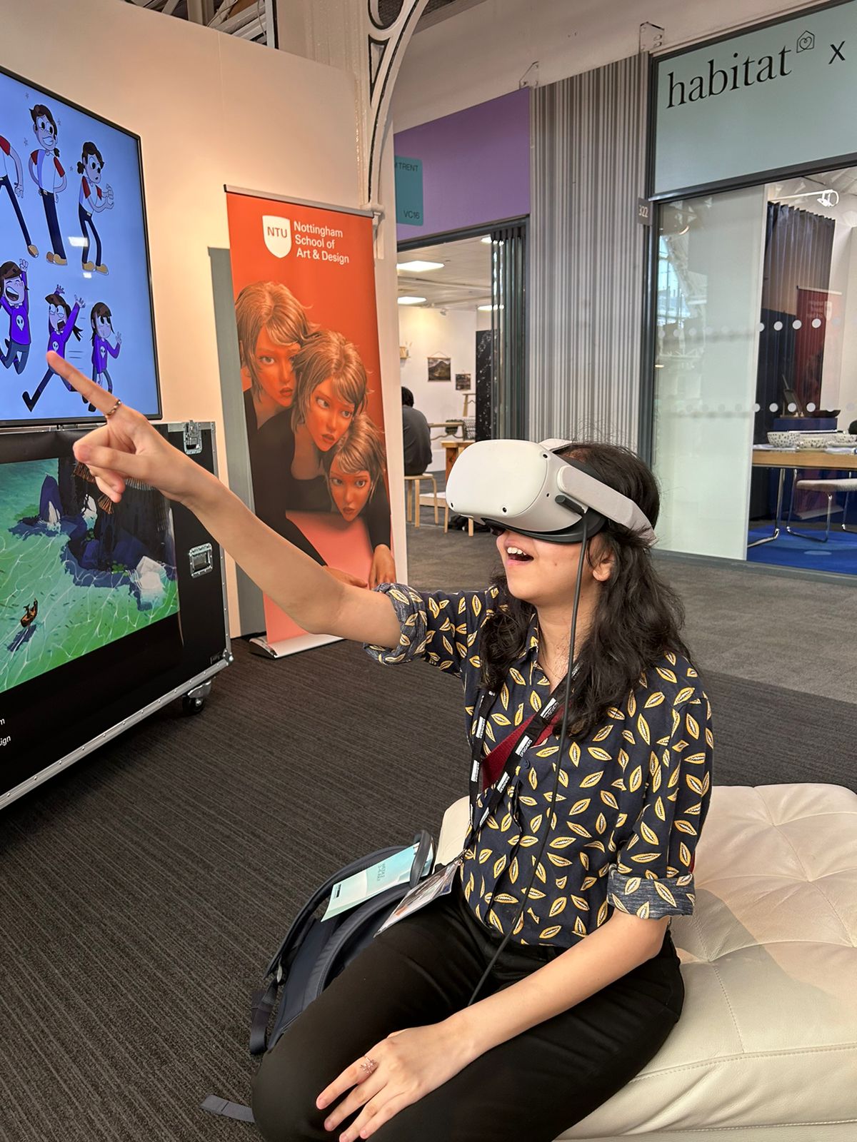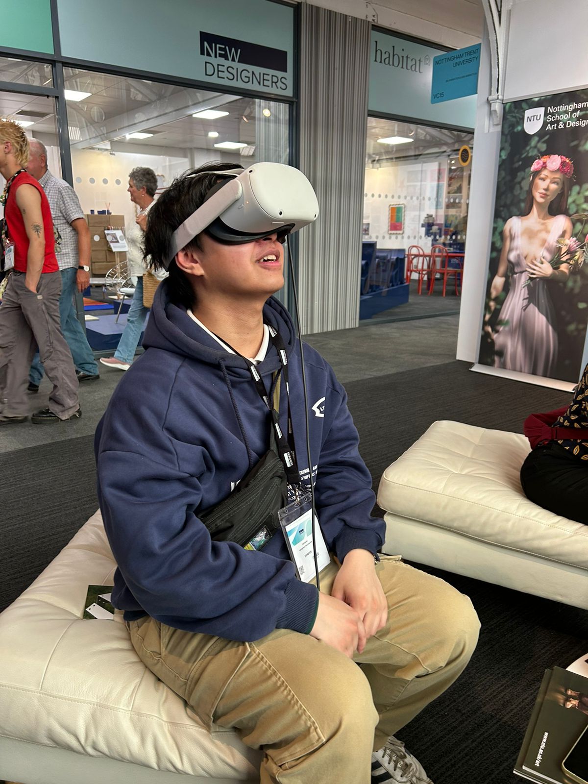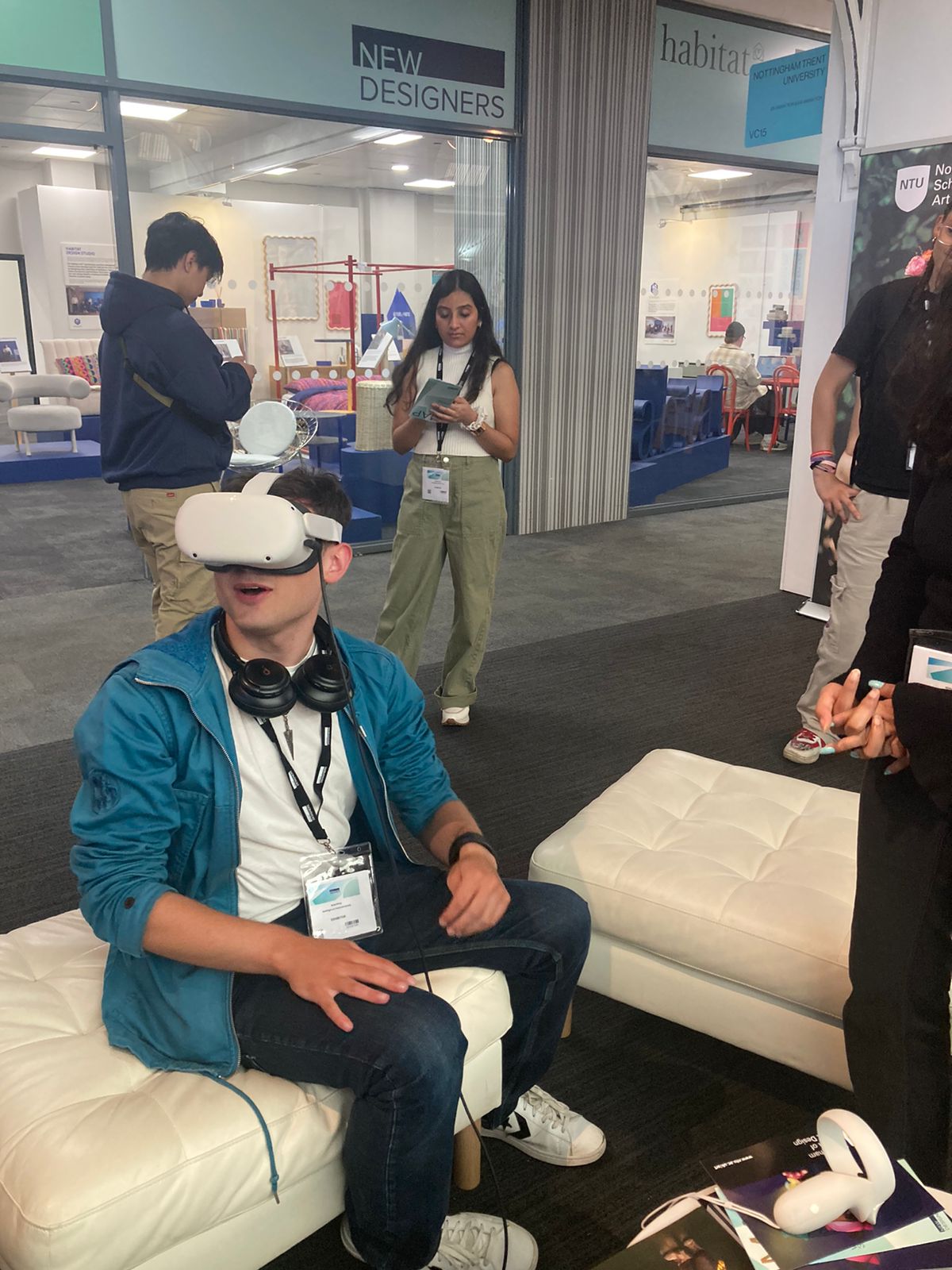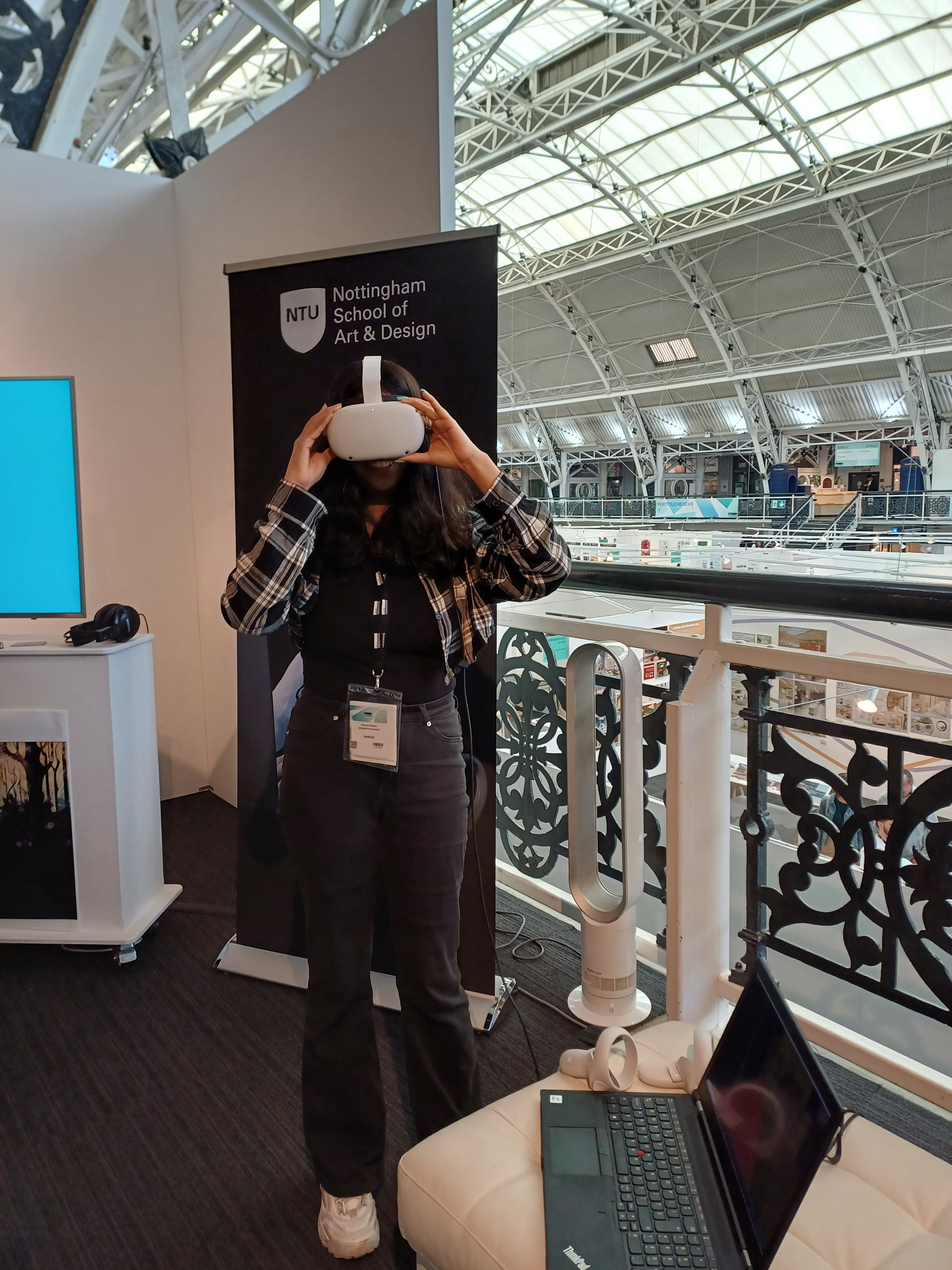 I had the opportunity to showcase my VR experience at New Designers, where I gathered feedback from a range of people, including professionals and a diverse audience of different age groups. Most users, whether gamers or not, engaged with the experience for about 10 minutes, with first-time VR users showing particular excitement. Children drew comparisons to elements of Minecraft, while adults were fascinated by the portals’ wavy, ethereal nature.