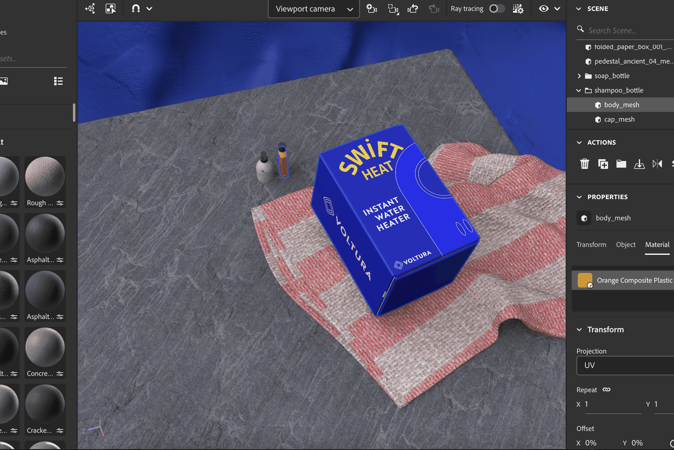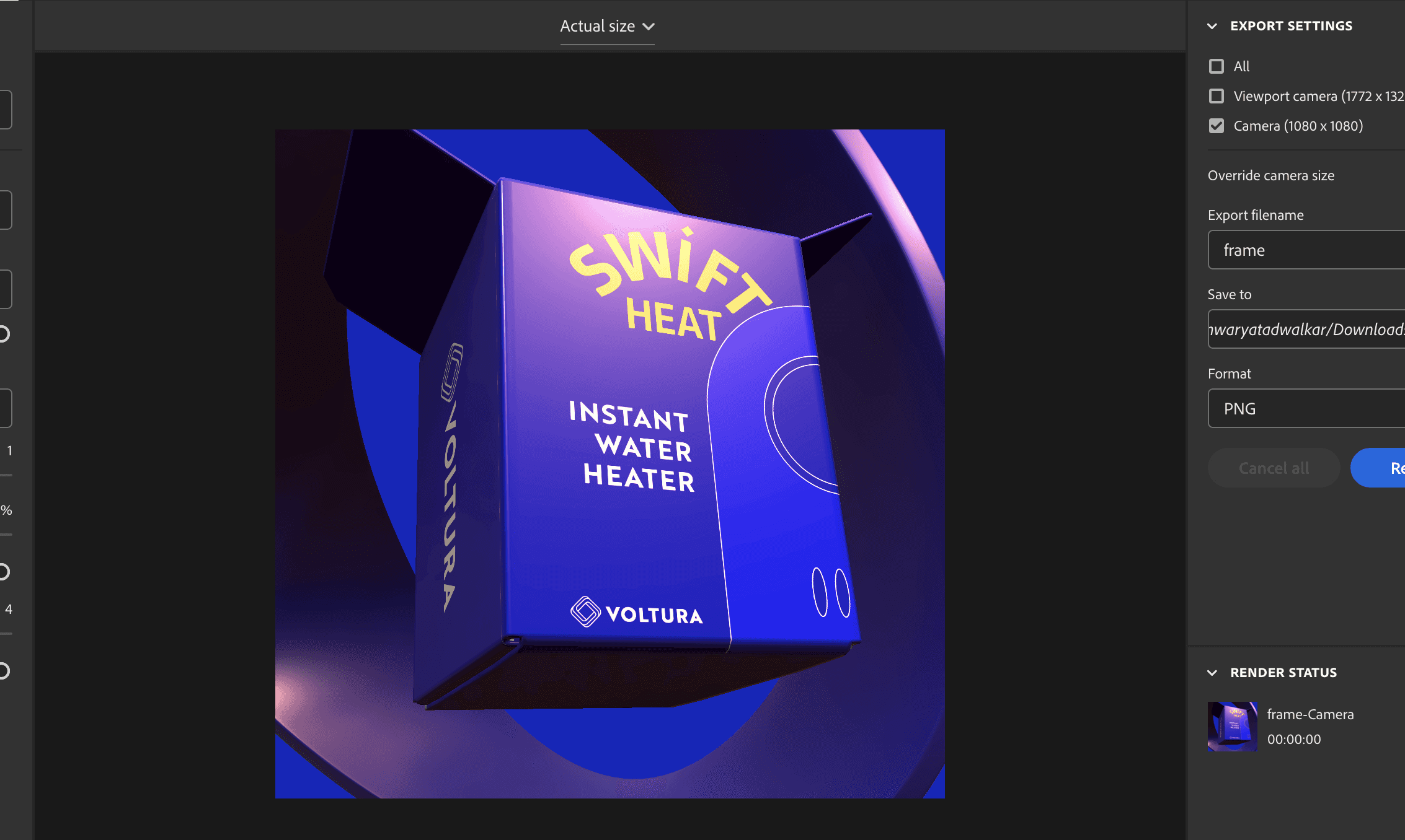Creating and staging the packaging in Adobe Dimension was a fun experience. I started by selecting a packaging model from its library and applying my designs to it. From there, I explored different staging techniques, experimenting with various props and perspectives to find the most dynamic setup. I also played around with color combinations, which led me to discover the perfect blend of purple, violet, and blue—a combination I’m particularly proud of. This stage of the project allowed me to get creative and really bring the design to life.